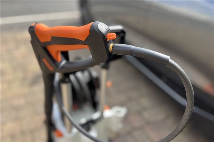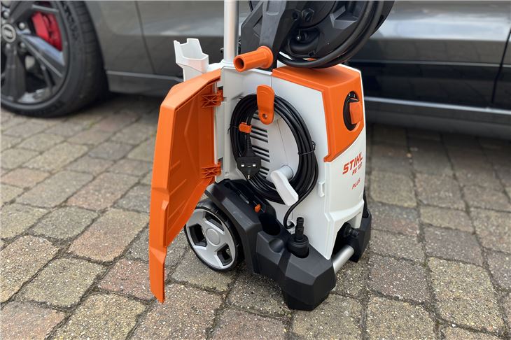 Like all Stihl products, the RE 120 Plus feels high quality and made to last. At more than 20kg, it's hardly light, as you'd expect, but the sturdy telescopic handle makes it easy to manouevre in the right place. Setting it up is easy too, the power lead is neatly stored in a side compartment (where you can also keep the spare nozzle) while the lance simply clicks into the quick release hose fitting. Connect your hose and you're ready to go.